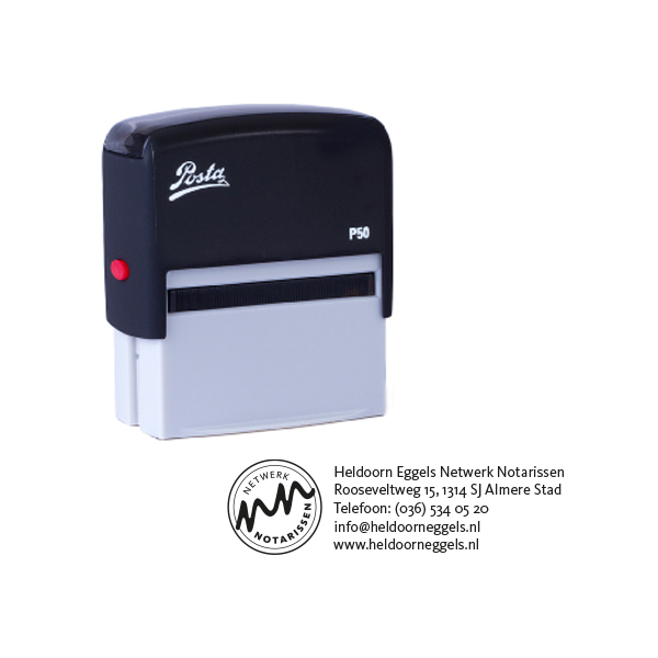 Stempel met kantoorgegevens. Per stuk te bestellen.